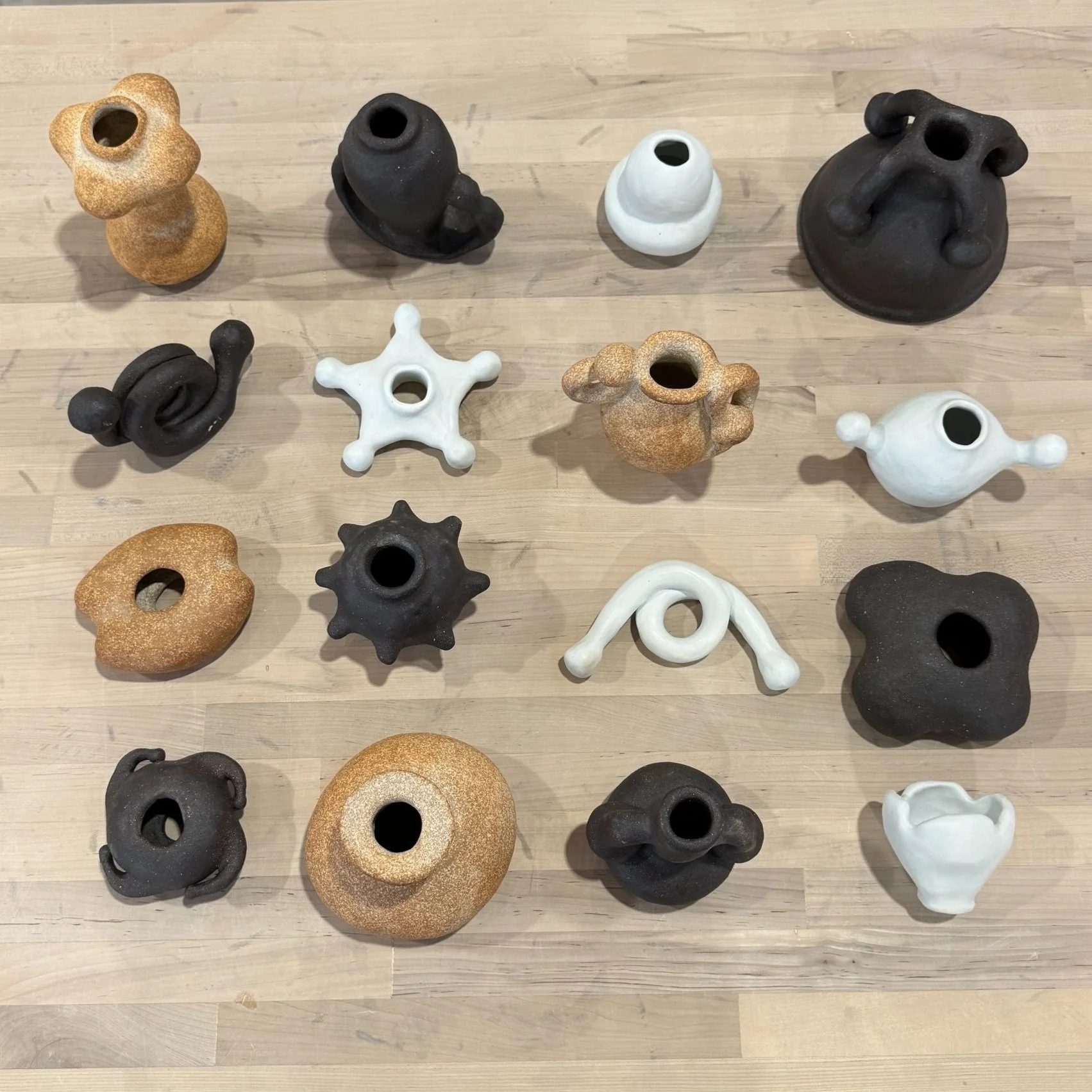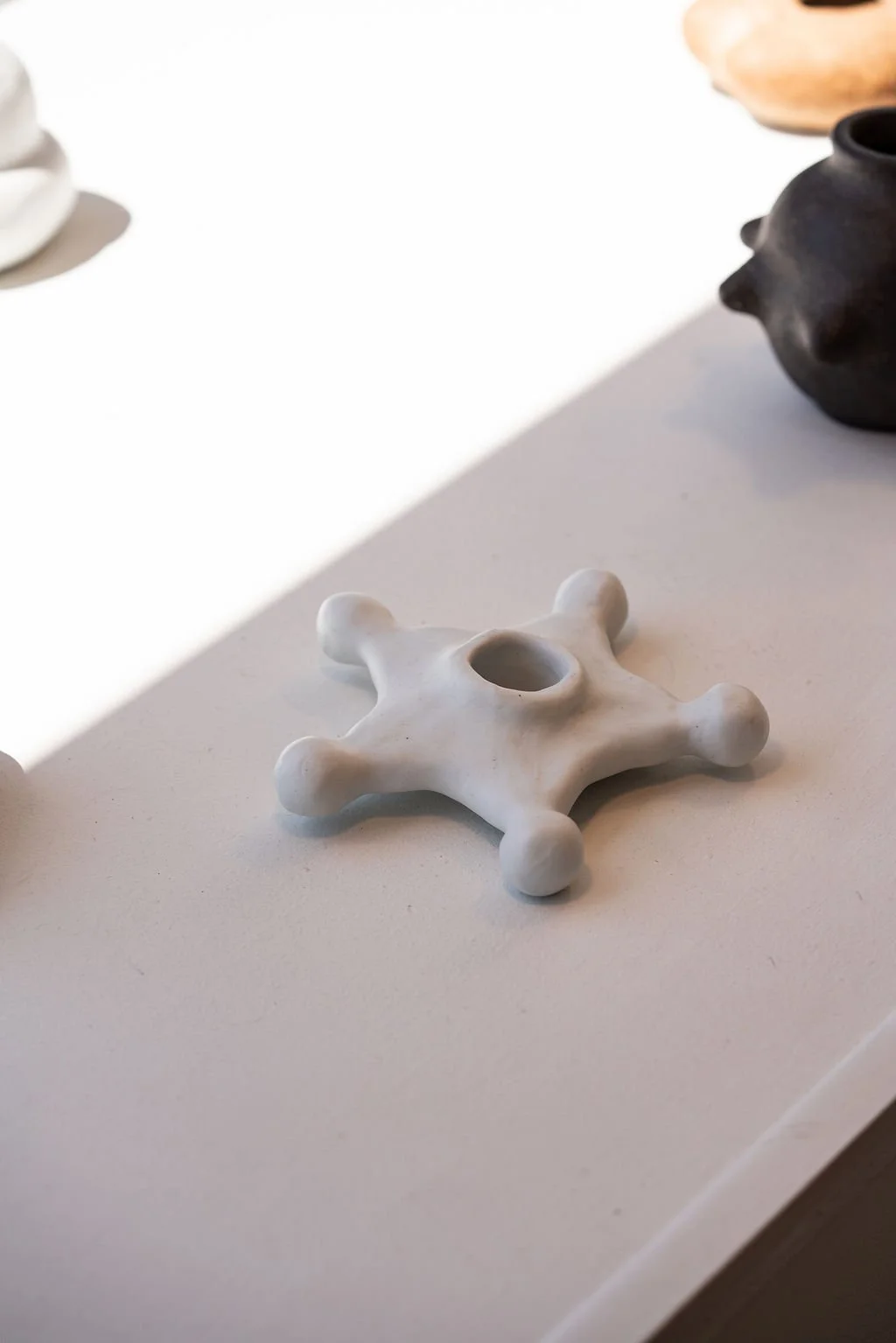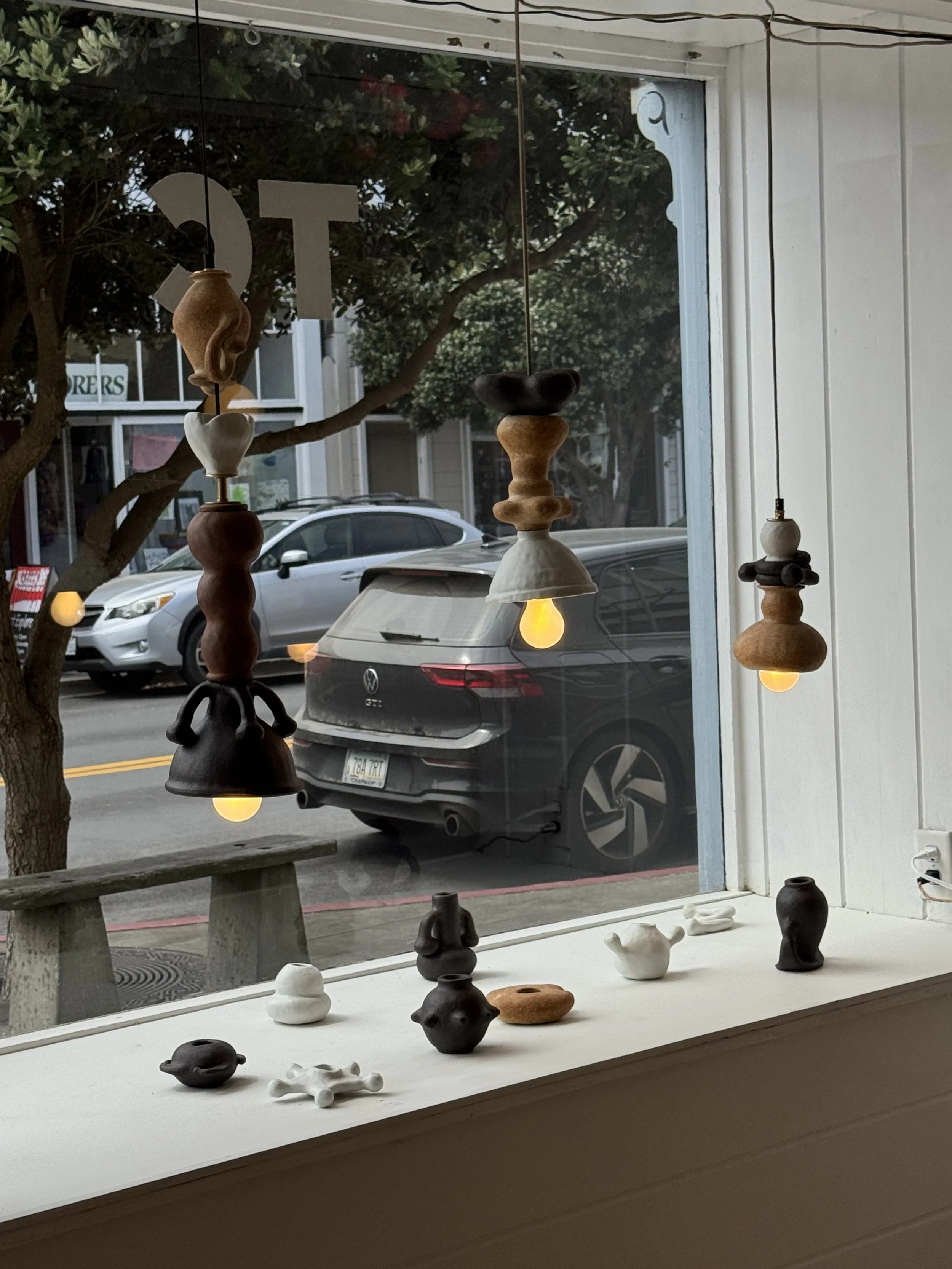 Exquisite Corpse is a sculptural lamp composed of four different clay bodies and over 20 interchangeable beads *only a few on view*. Inspired by flower parts and the shapes and forms in mutualistic pollinator plant relationships. Named after the 19th century French Parlor game Exquisite Corpse, I created each part without seeing the next, creating a whole image or “corpse” revealed in the end.